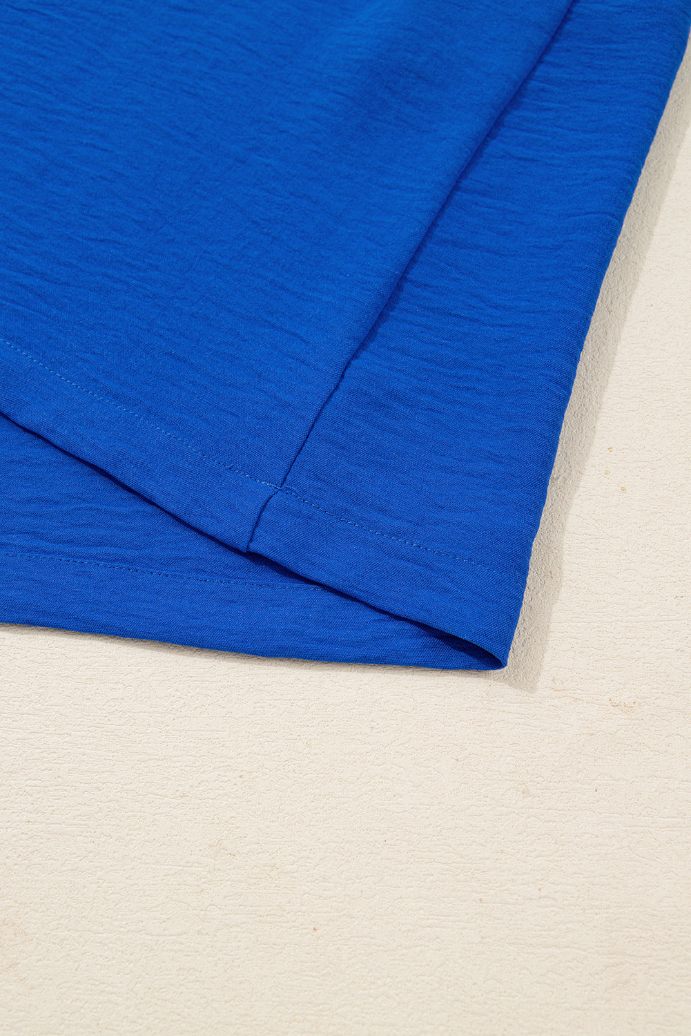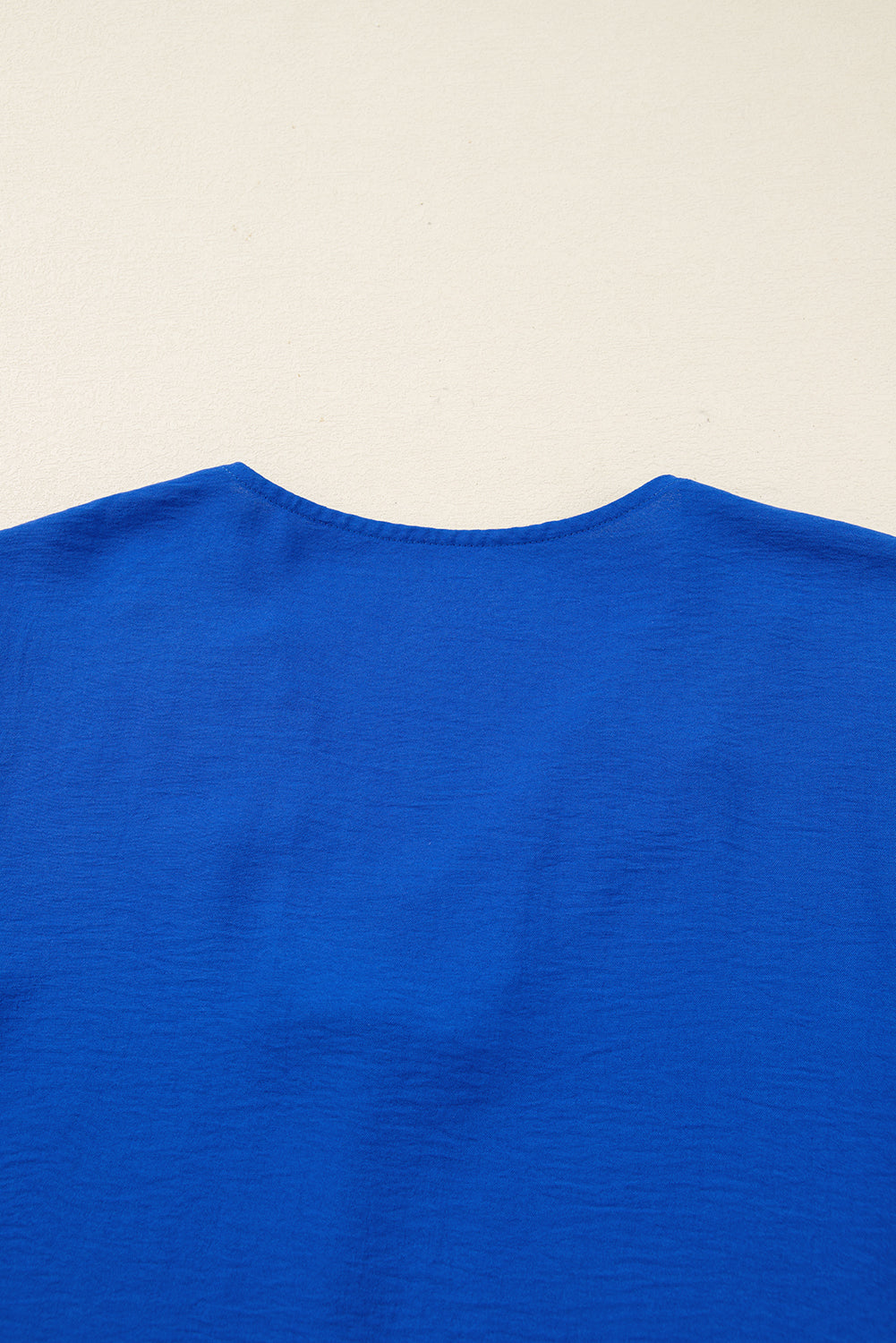 Sky Blue Frilled V Neck Bracelet Sleeve Shift Mini Dress